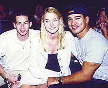 Krista Frazier (R), Miss Hawaiian Tropic International 1995, and Miss Philadelphia Hawaiian Tropic '97 Judy Meyers (L) are thrilled to meet Mario López, well known for his roles in the hit TV shows Saved by the Bell and Pacific Blue. |