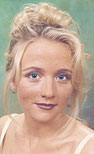 Noticeable problem areas should receive special attention. For instance, Betsy has dark circles under her eyes. Luckily, the foundation has the consistency to hide them, but if the circles were still visible, a foundation in one shade lighter would be the answer. (Remember that Cinderella's godmother always had the answers!) However, be careful! If the foundation is too light, it will just draw attention to the area. Any areas that are not your best features can also be "corrected." (See "Extra Tips & Hints" below.) Also, notice that Betsy's eyebrows are well done. She's been to a salon to have them professionally tweezed. You don't necessarily need to do that. Pluck excess hair underneath the brow, following the natural arch of the brow rather than redefining them. Make certain there is no hair between the brows. (Cinderella most definitely was not a unibrow!)