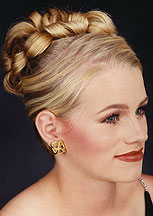Callie Cummings is 16, with natural long blond hair. This gave us plenty of hair to work with in these two up-do styling treatments.