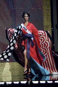 Addressing the judges’ questions in their native tongues (with English interpretation for all but Miss USA), Miss Venezuela spoke eloquently about maintaining the proper balance in a man-woman relationship; Miss Korea rose to the occasion in choosing a comic book hero’s super power to help support her missionary work; Miss Brazil put her heart and mind into answering a question on using both of those resources to live her life to the fullest; Miss USA deftly handled her question (as well as a smattering of audience jeers) by relating her eye-opening and educational experience while visiting South Africa; and Miss Japan was eloquent in crediting her childhood dance classes for lessons in being happy, patient, and positive that continue to inspire her today.